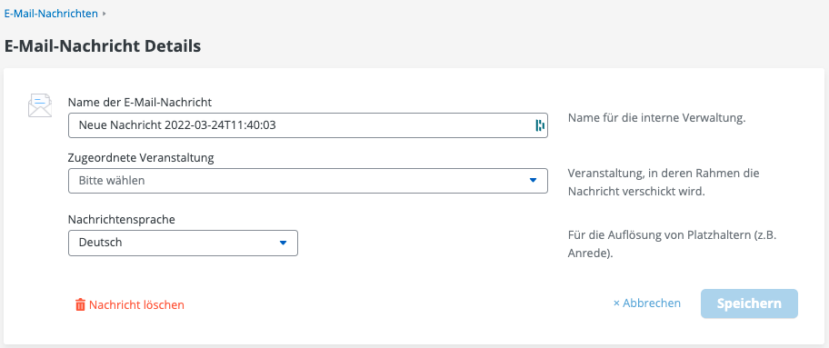Wenn Sie eine neue Nachricht erstellen tragen Sie die erforderlichen Daten in den einzelnen Abschnitten ein.