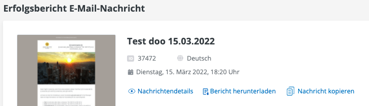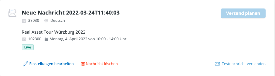 - Klicken Sie in den Nachrichtendetails auf den Button zum Versand von Testnachrichten