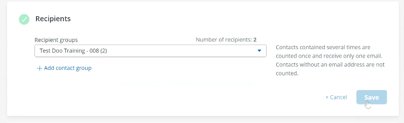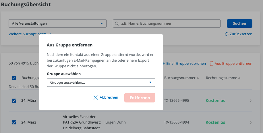 Die registrierten Kontakte sind aus der Empfängergruppe entfernt.