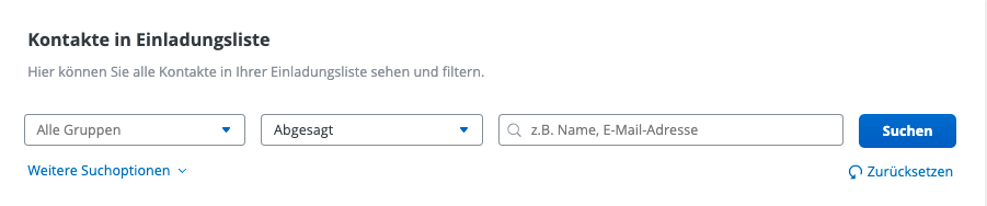 - In der unteren Tabelle „Kontakte in Einladungsliste“ wählen Sie im Reiter „Status“ die Option „abgesagt“ aus