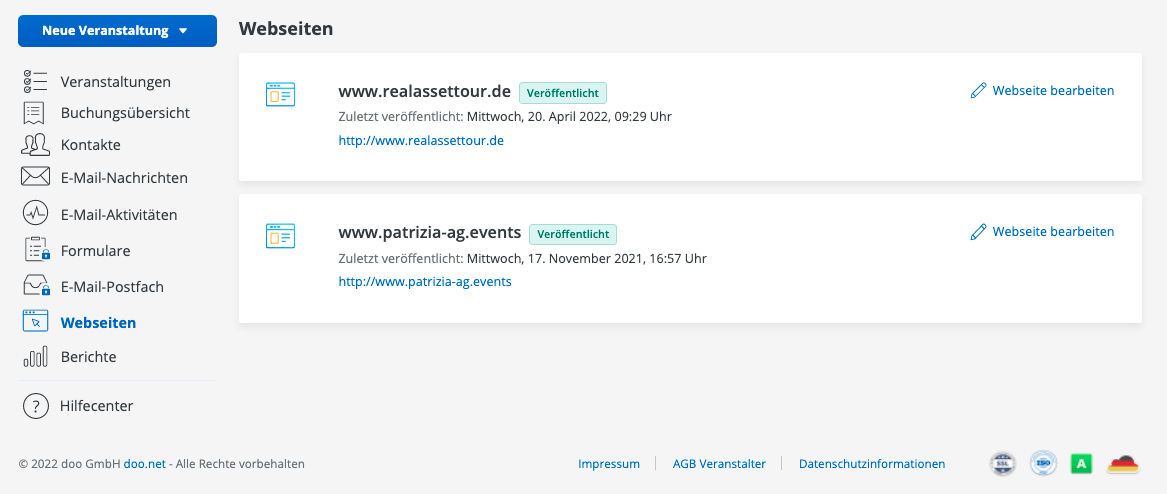 Event-Webseite erstellen und verwalten