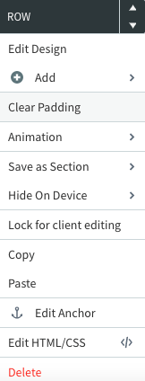 Um die Zeile innerhalb der Seite nach oben oder unten zu verschieben, klicken Sie oben in dem Bearbeitungsfenster auf das entsprechende Pfeilsymbol. Um die Zeile zu entfernen, klicken Sie unten in der Auswahl auf "Löschen". Das Bearbeitungsfenster bietet Ihnen außerdem die Möglichkeit, z.B. das Design anzupassen oder Animationen (z.B.: Elemente werden langsam eingeblendet oder erscheinen aus einer gewählten Richtung aus) auszuwählen.
