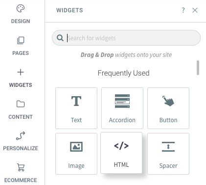 Nach der erfolgreichen Erstellung Ihres Widgets und dem Kopieren des Widgetcodes, wählen Sie im linken Menü unter der Registerkarte "Elemente" das Feld "HTML" aus und ziehen es auf die gewünschte Position auf Ihrer Seite.
