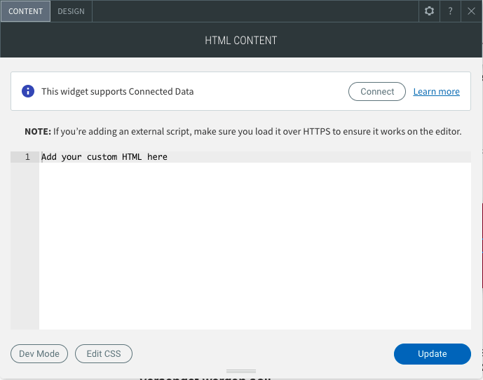 Sobald Sie die Maustaste an der gewünschten Stelle loslassen, öffnet sich ein Fenster, in welches Sie den Widget-Code einfügen können. Bestätigen Sie die Integration des doo Widgets durch Klick auf "Aktualisieren".